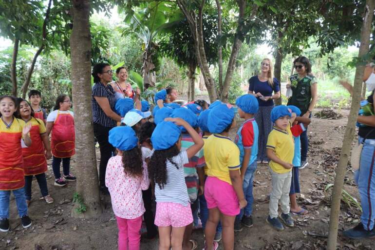 Os alunos da educação infantil da Escola Municipal Mozart Tanajura (Extensão Mozartinho) participaram de uma aula de campo na horta comunitária do loteamento Vila América, localizado no bairro Boa Vista. A ação foi articulada pela direção da escola com a Secretaria Municipal de Desenvolvimento Social (Semdes), por meio da Coordenação de Segurança Alimentar e Nutricional (Cosan) e Secretaria Municipal de Desenvolvimento Rural (SMDR).