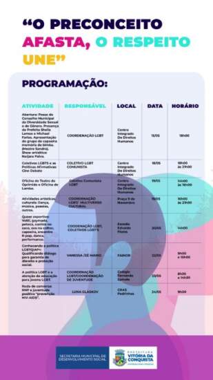 A campanha Maio da Diversidade é uma das ações desenvolvidas pela Prefeitura, com uma programação durante todo o mês dedicada às conquistas e lutas enfrentadas pela comunidade LGBTQIAP+. O tema escolhido para a campanha deste ano foi “O preconceito afasta, o respeito une”, visando reforçar valores como inclusão, autonomia e democracia. Durante a programação do mês, estão previstas oficinas, palestras, rodas de conversa, shows, exibição de filmes, além de atividades artísticas e culturais.
