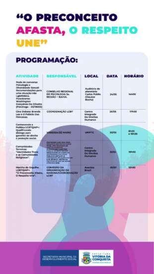 Preocupada com a garantia de direitos para essa população, a Prefeitura de Vitória da Conquista, por meio da Coordenação de Promoção da Cidadania e Direitos LGBTs, tem se empenhado na criação de políticas públicas voltadas para o público LGBTQIAP+, sendo a terceira cidade na Bahia a possuir uma Coordenação LGBT, que além de colocar em prática projetos que garantem cidadania, também promove capacitações, atendimento psicológico e acompanhamento jurídico, quando necessário.