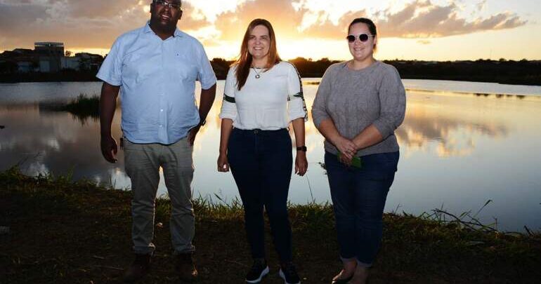 Acompanhada da secretária municipal de Meio Ambiente, Ana Cláudia Passos, e do coordenador do Deserg, Lucas Batista, a prefeita Sheila Lemos visitou o Parque da Lagoa das Bateias no fim da tarde dessa segunda-feira (29), para conferir de perto o resultado da revitalização que está sendo executada no local.
