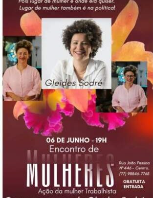O evento é organizado pelo PDT municipal de Vitória da Conquista e que contará com a presença de GLEIDES SODRÉ presidente estadual da Ação da Mulher Trabalhista de São Paulo.