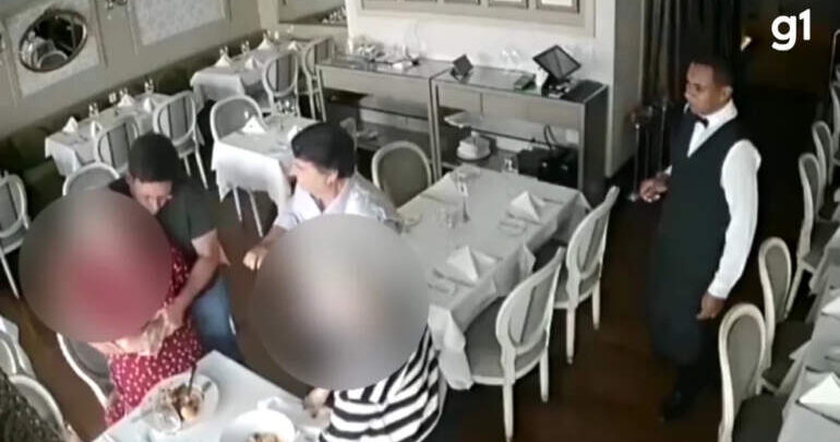 Nas imagens da câmera de segurança do restaurante é possível verificar que duas senhoras almoçam no local e, de repente, uma delas sente o desconforto na garganta. Ela bebe um pouco de água, segura no pescoço e, em seguida, começa a tossir e gesticular com as mãos. Ao indicar que engasgou, a idosa levanta da cadeira.
