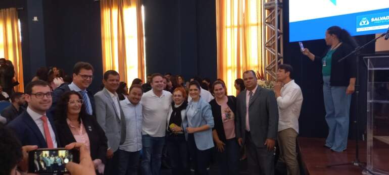 Nesta sexta-feira (16), a Prefeitura Municipal de Vitória da Conquista lançou o projeto “Governando com as Pessoas”, fruto de uma parceria com a Prefeitura de Salvador. A assinatura do termo de cooperação técnica aconteceu às 10h30, no auditório Lúcia Dórea (Cemae), onde a prefeita Sheila Lemos recepcionou o ex-prefeito da capital baiana, ACM Neto, o prefeito Bruno Reis, o secretário de Governo da Prefeitura de Salvador, Cacá Leão, e outras lideranças políticas.