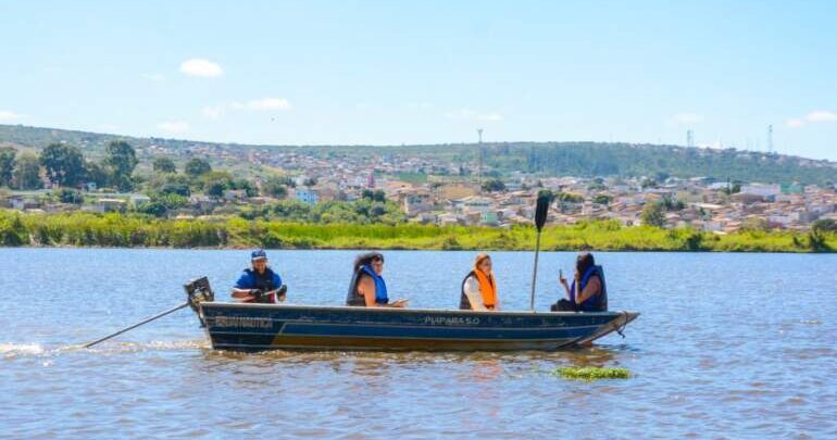 A prefeita Sheila Lemos esteve, nesta sexta-feira (30), no Parque Municipal Lagoa das Bateias para vistoriar o andamento da obra de revitalização que está em curso no local. De barco, a prefeita percorreu a extensão da lagoa que já está sem a vegetação aquática e viu de perto o quanto a obra avançou nos últimos quatro meses de trabalho ininterrupto.