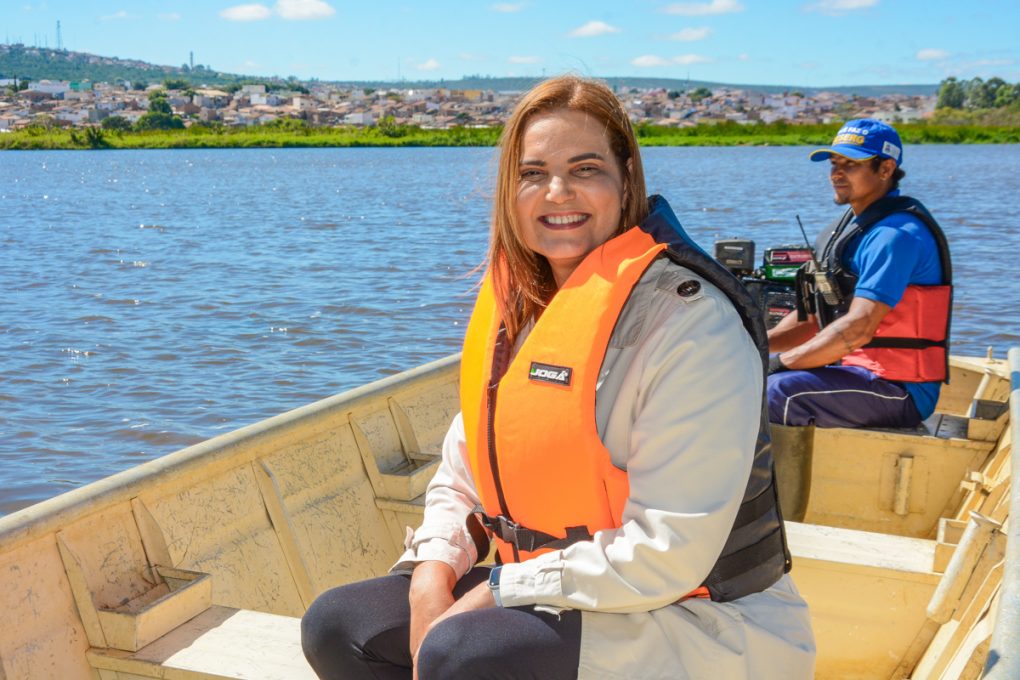 A prefeita Sheila Lemos esteve, nesta sexta-feira (30), no Parque Municipal Lagoa das Bateias para vistoriar o andamento da obra de revitalização que está em curso no local. De barco, a prefeita percorreu a extensão da lagoa que já está sem a vegetação aquática e viu de perto o quanto a obra avançou nos últimos quatro meses de trabalho ininterrupto.