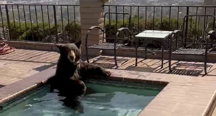 🐻🏊 Urso-negro é flagrado refrescando-se em piscina durante onda de calor na Califórnia! 🌞
