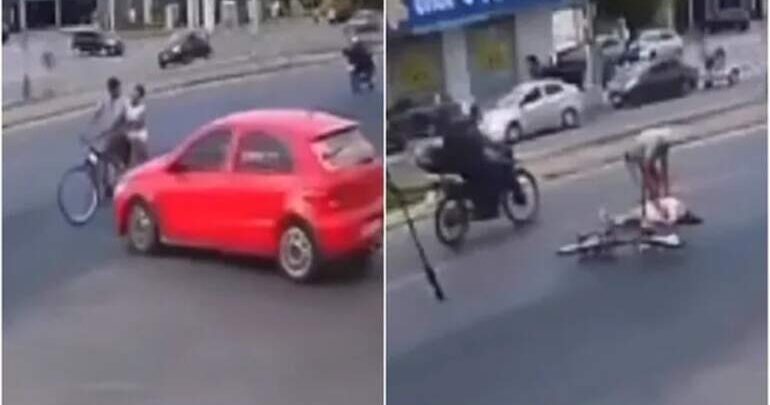 Um trágico acidente de trânsito ocorreu nesta quinta-feira (3) na Avenida General Osório de Paiva, localizada no bairro Siqueira, em Fortaleza, Ceará. Um casal que transitava em uma bicicleta foi atropelado por um veículo enquanto passava em frente a uma via.
