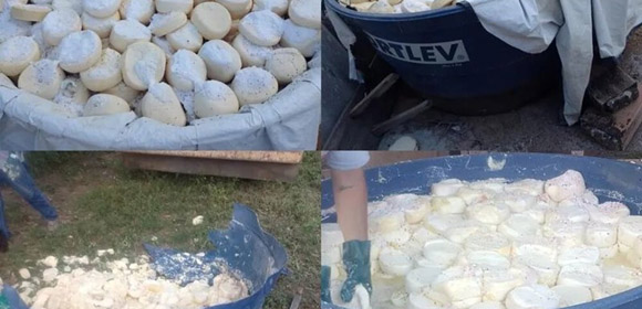 “Esse local já foi alvo da operação da PM, ocasião em que foram apreendidas mais de 32 toneladas de queijo. hoje vimos que as condições desse local continuam praticamente as mesmas”, lamentou o tenente.