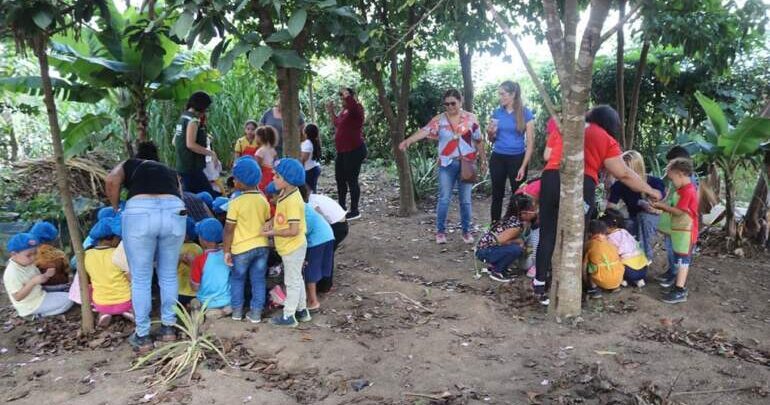 Alunos da educação infantil participam de aula de campo na horta do Vila América