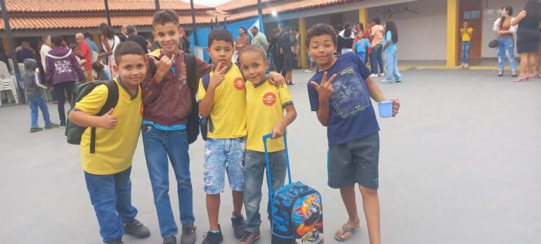 Entre as melhorias feitas na escola, Miquéias disse ter gostado especialmente da cobertura construída no pátio da escola. “Ficou boa essa barreira que colocaram aí para proteger da chuva, porque, antes, a gente tinha que ficar aqui [sob o telhado], e ficava muito apertado”, disse o estudante, que também apreciou o novo aspecto do piso. “Antigamente, escorregava. Agora, está melhor”, registrou. As ilustrações lúdicas nas paredes e as modificações nas salas de aula também mereceram sua aprovação: “Ficou muito confortável e bom para os professores darem aula”.