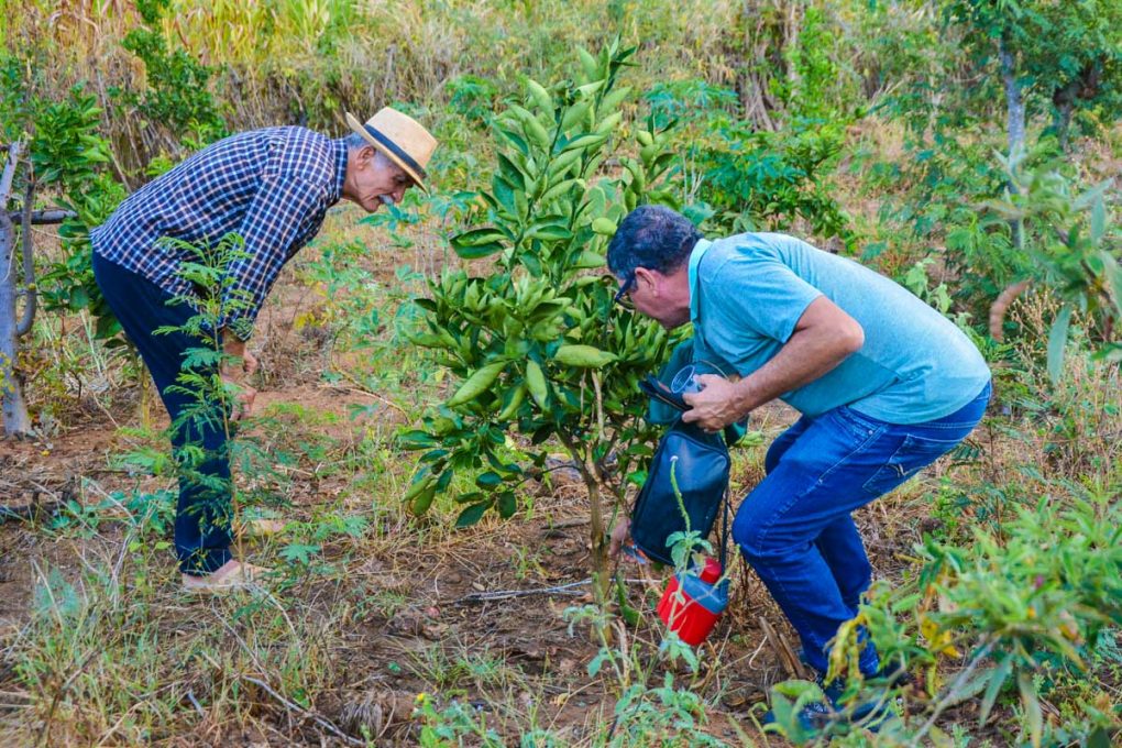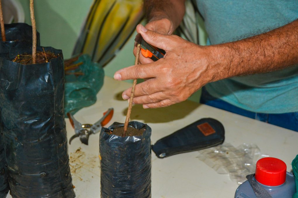 A visita já estava agendada para acontecer neste mês de agosto, pois, segundo o coordenador de Fomento à Agricultura Familiar, Eduardo Castro, é a época ideal para o plantio dessas espécies, por ser o período que antecede as chuvas. Assim, as mudas de umbu nativo, conhecido como “umbu catingueiro”, foram trazidas da fazenda experimental Pedra Mole até Roçadinho para que os agricultores aprendessem, passo a passo, a técnica da enxertia.