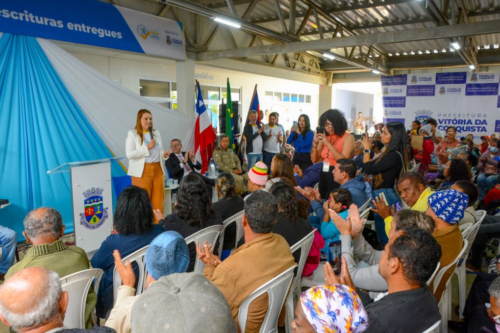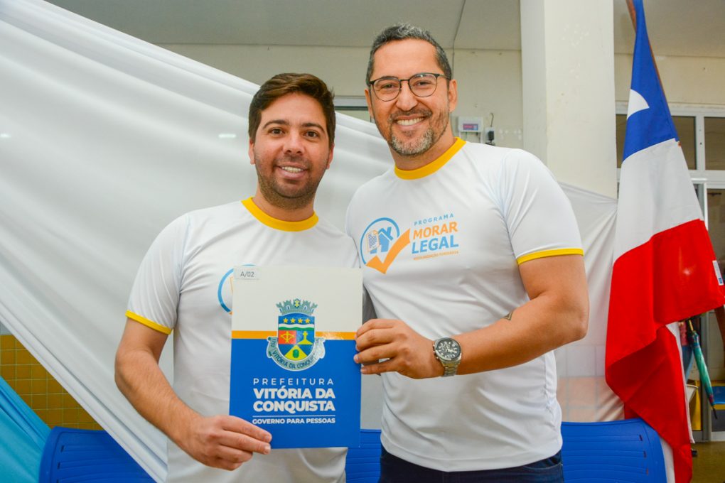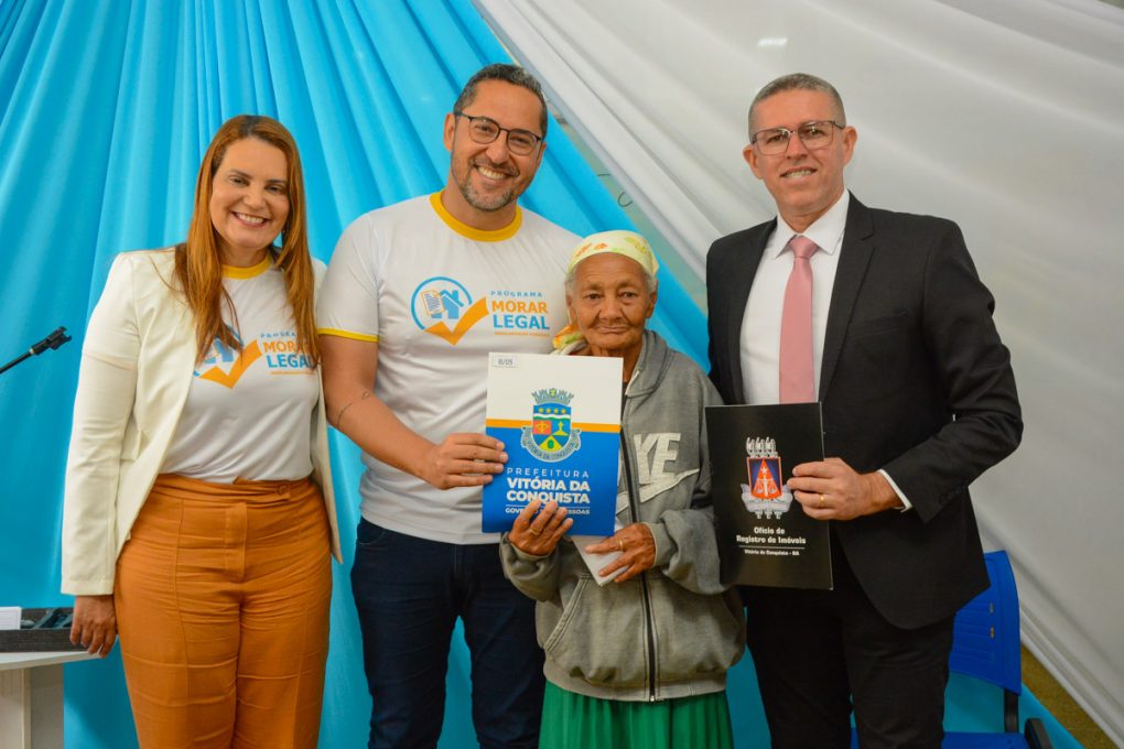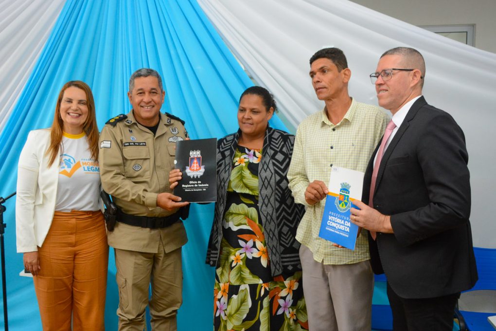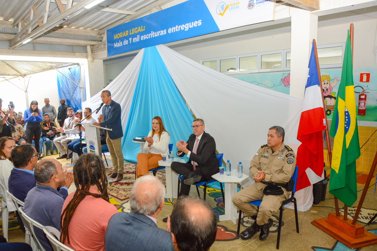A solenidade contou também com a presença do oficial de Registro de Imóveis de Vitória da Conquista, Carlos Alberto Resende, de vereadores, líderes comunitários, moradores beneficiados e convidados.