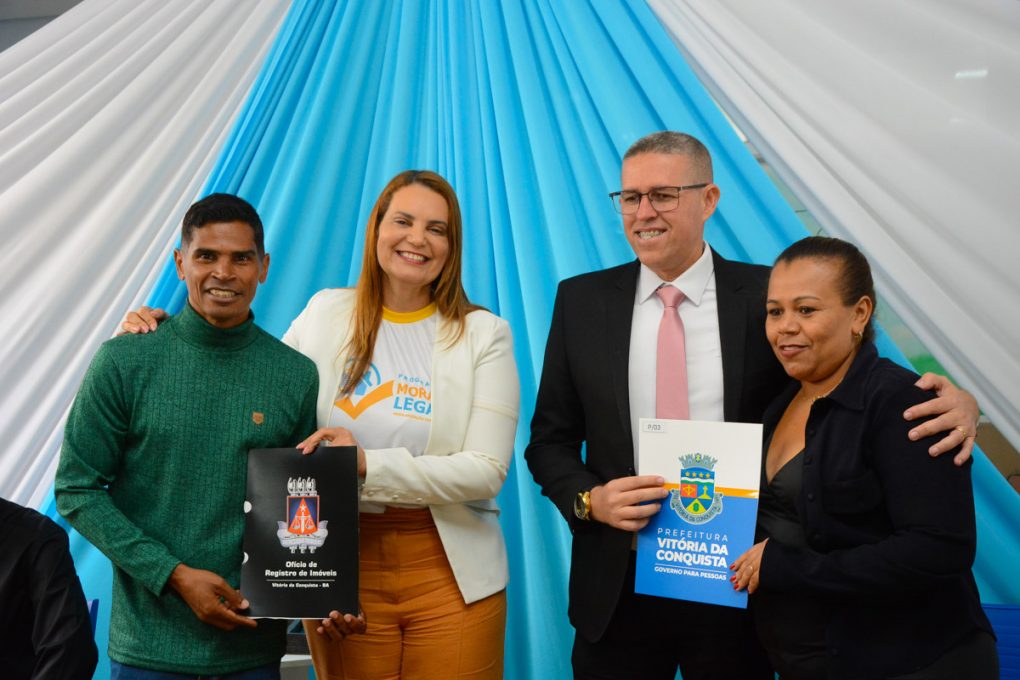 Mais de 500 famílias do loteamento Nova Cidade receberam na manhã desta terça-feira (7), as escrituras definitivas dos seus imóveis, entregues pela Prefeitura de Vitória da Conquista, por meio do Programa Morar Legal. A ação foi realizada no Centro Municipal Pablo Pithon e contou com a presença da comunidade. Com esta etapa de regularização fundiária, o Governo Municipal já entregou mais de 7 mil escrituras, de forma ágil e sem nenhum custo aos moradores.