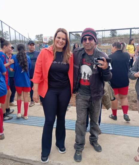 A alegria era contagiante entre os presentes, que celebraram a significativa melhoria no parque. “Agora temos mais um grande espaço de lazer em nossa cidade, e isso me deixa muito feliz. Parabéns, prefeita Sheila”, afirmou Seu Dadinha, morador do bairro Vila América.Seu Dadinha oficial e prefeita Sheila Lemos.
