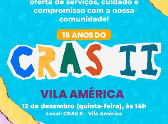 Não perca! Venha celebrar conosco os 16 anos de história e conquistas do CRAS 2 do Vila América. A festa é de todos nós!
