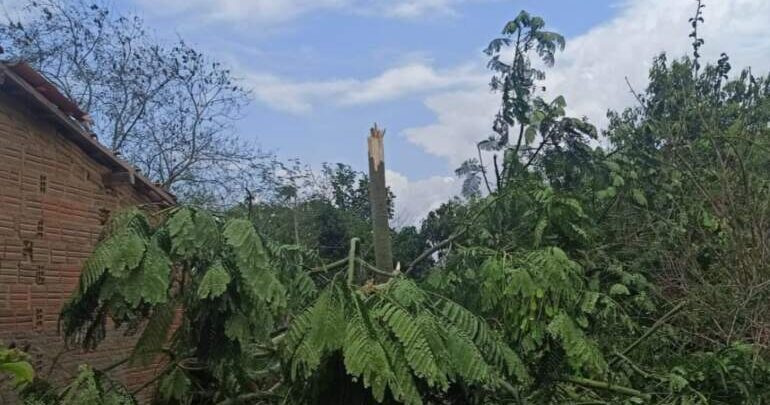 O povoado de Juazeiro e o Assentamento Lagoa Nova, no distrito de Iguá, foram atingidos, na noite de quarta-feira (25), por chuva com vento forte que destelhou, aproximadamente, 30 casas, desabou parte do cômodo de uma casa, e arrancou várias árvores e dois postes, deixando as localidade sem energia elétrica.