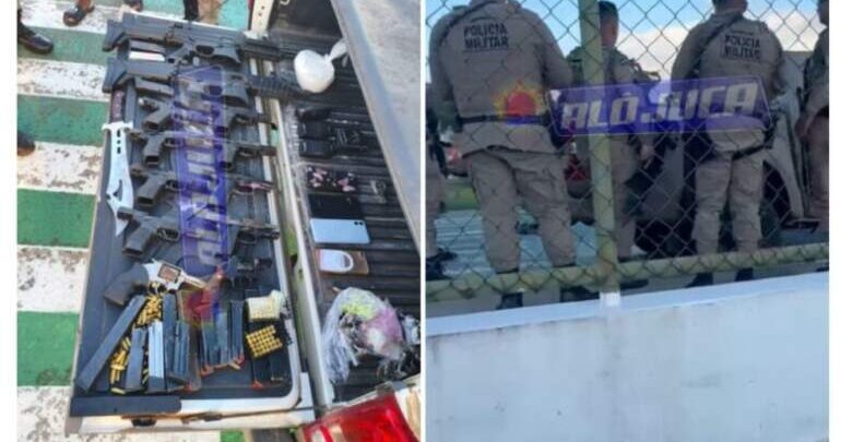 A PM apreendeu um arsenal de armas que inclui submetralhadoras, pistolas, revólveres, carregadores, munições