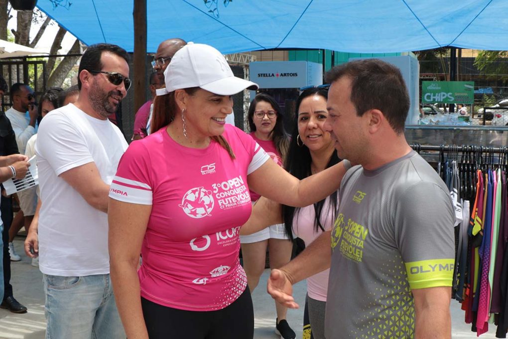“A Prefeitura esteve aqui desde o primeiro evento e a cada ano a gente vem aumentando a parceria e fazendo a festa ficar mais linda”, afirmou a prefeita, ressaltando os benefícios do esporte: “Esporte é saúde, é qualidade de vida, por isso a gente vem incentivando a prática esportiva em nosso município, a exemplo do Murilão, onde criamos um centro esportivo, e o Parque Lagoa das Bateias, onde vamos fazer quadras, inclusive de futevôlei”.