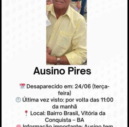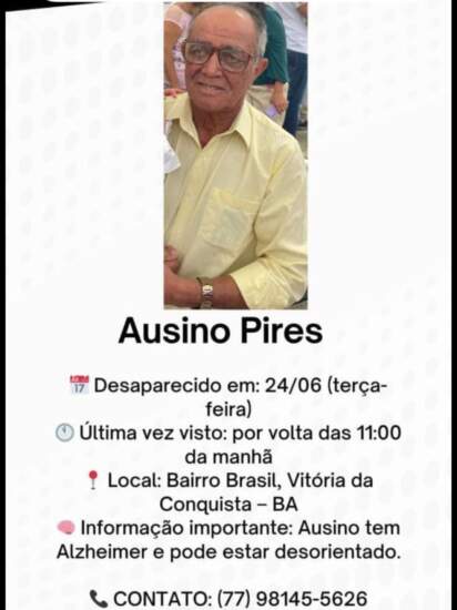 Senhor com Alzheimer desaparecido em Conquista, quem souber do paradeiro, ligue 77981455626