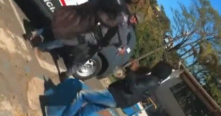 Nas imagens divulgadas, a mulher — visivelmente alterada — aparece discutindo com os agentes. Ela afirma ser “bandida” e ameaça os policiais dizendo que quem encostasse nela “levaria bala”. Em seguida, um dos PMs desfere um tapa em seu rosto, fazendo com que ela caia no chão e grite de dor. O mesmo agente ainda manda a mulher “calar a boca” diversas vezes.
