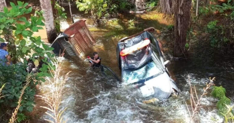 De acordo com informações do órgão de segurança, o veículo perdeu o controle em um trecho da rodovia, saiu da pista, despencou por uma ribanceira e só parou dentro de um igarapé às margens da estrada.
