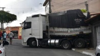 Carreta perde freios e colide com casas no bairro Guarani em Vitória da Conquista