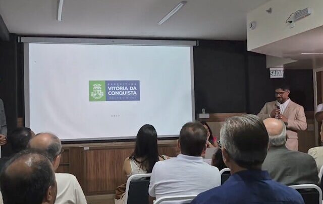 A Prefeitura de Vitória da Conquista apresentou, na manhã desta quinta-feira (6), sua nova identidade visual para a gestão 2025-2028. Com o slogan “Vitória da Conquista é exemplo para a Bahia”, a iniciativa busca reforçar o protagonismo do município no estado. O evento de lançamento ocorreu no Hotel Ibis e reuniu a prefeita Sheila Lemos (União Brasil), o vice-prefeito Aloísio Alan (Republicanos), o secretário de Comunicação Luiz Fernando Lima, além de secretários municipais e membros da imprensa.